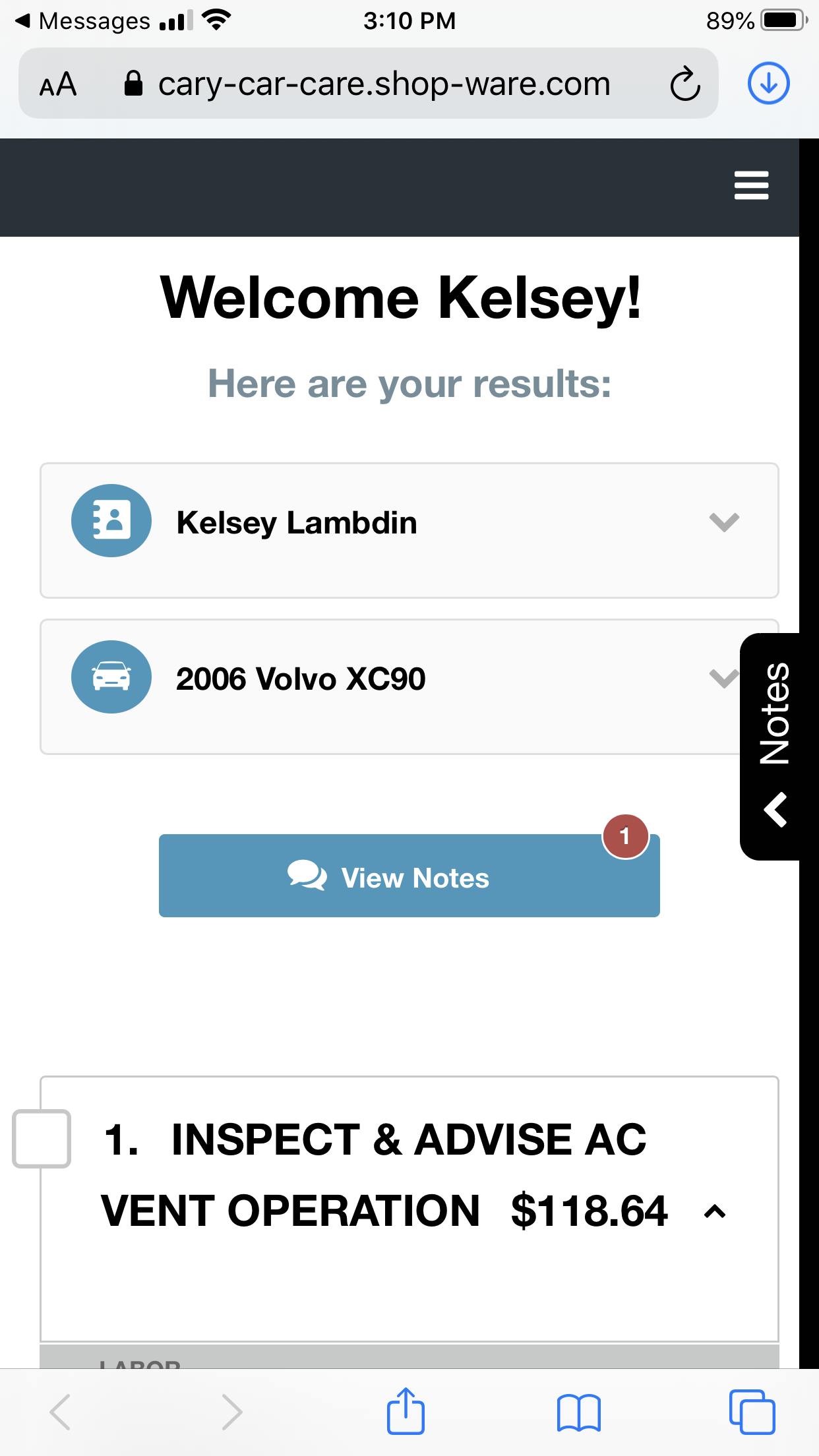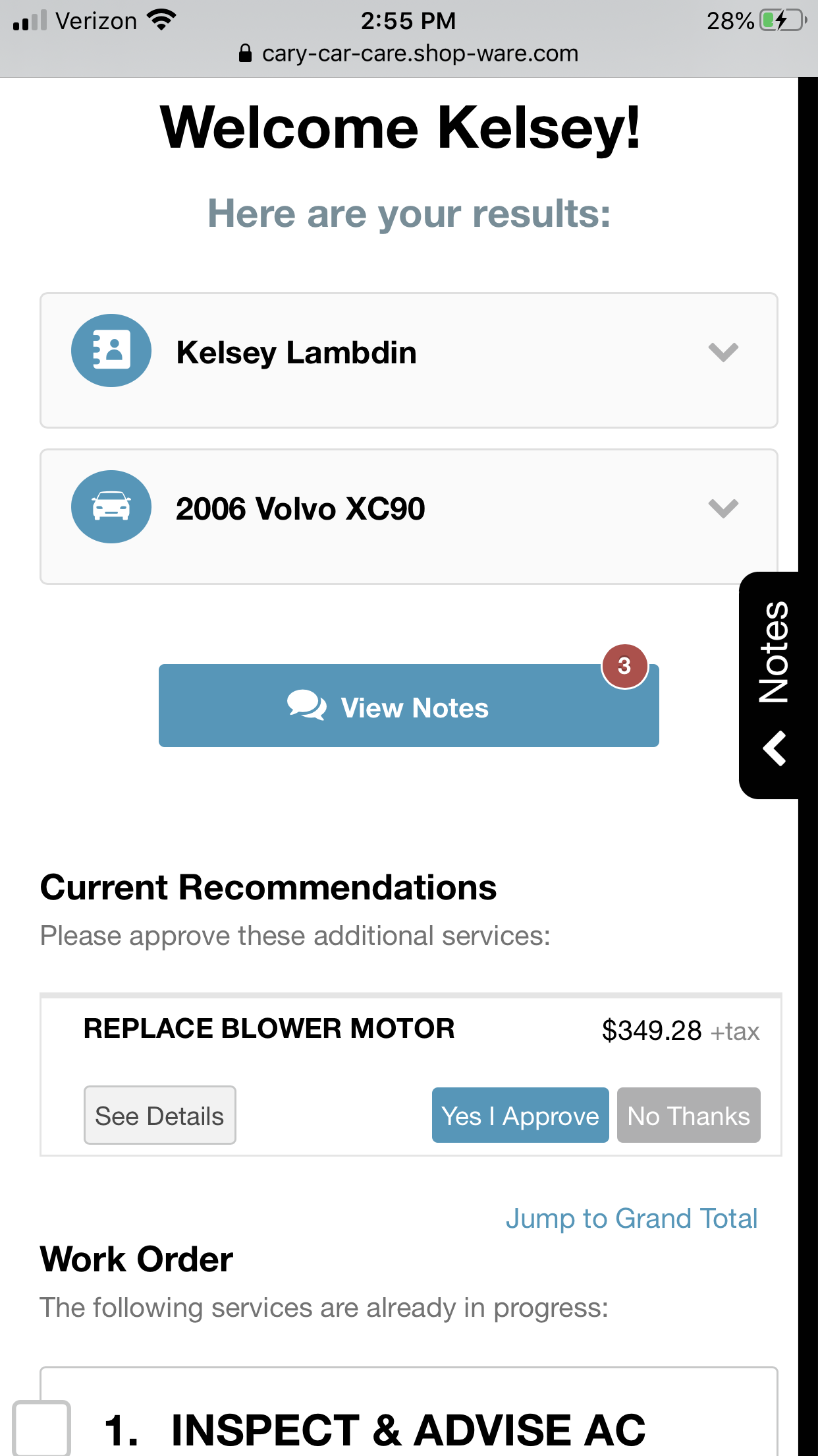 You can approve and decline services from there and/or make comments in the “notes” section to communicate directly with your service advisor.
