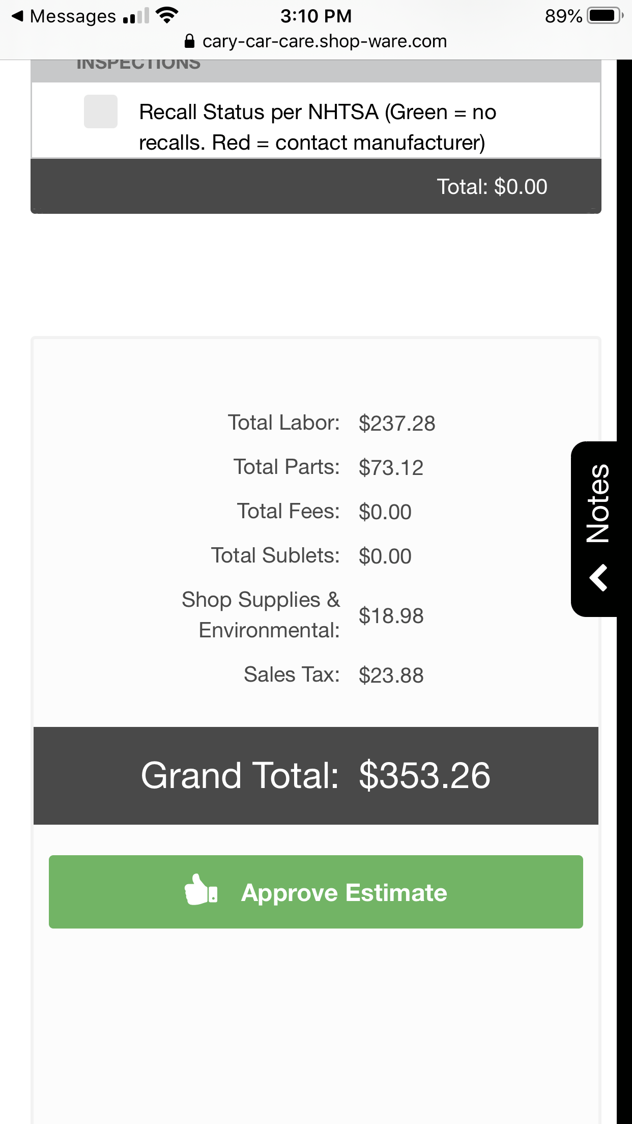 You can approve and decline services from there and/or make comments in the “notes” section to communicate directly with your service advisor.